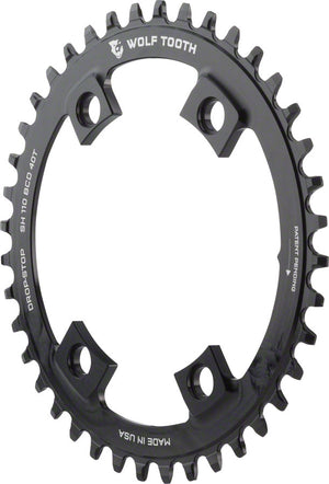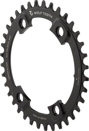 Wolf Tooth Shimano 110 Asymmetric BCD Chainring - 36t 110 Asymmetric BCD 4-Bolt Drop-Stop A For Shimano Cranks BLK